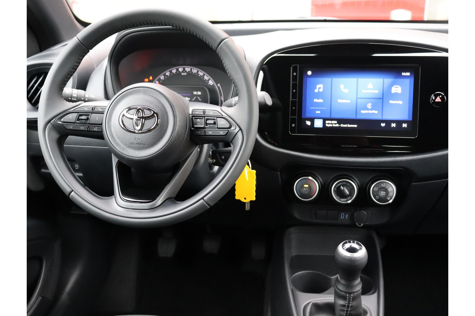 Nieuw en uit voorraad leverbaar! Deze Aygo X 5-Deurs Play in de kleur "Pure White" is voorzien van rode accenten! Voorzien van o.a Adaptieve Cruise Control, airconditioning, achteruitrijcamera en meer!
