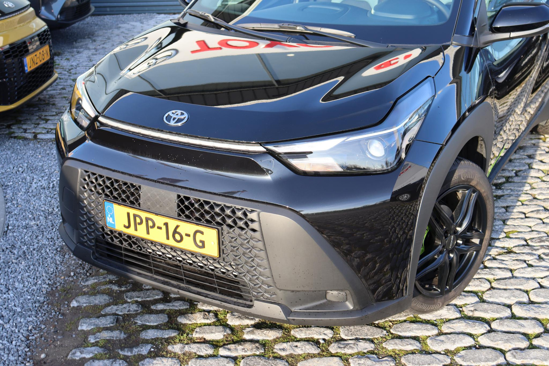 Aygo X Hybride 115 PK Play Green uitvoering. De Aygo met automaat is uitgevoerd met Groene remklauwen, 17 Inch zwarte LM vegen met Allseason banden, Getinte ramen, Draadloos Apple carplay en Android auto, Adaptieve cruise controle, Safety sense, parkeercamera en meer.
