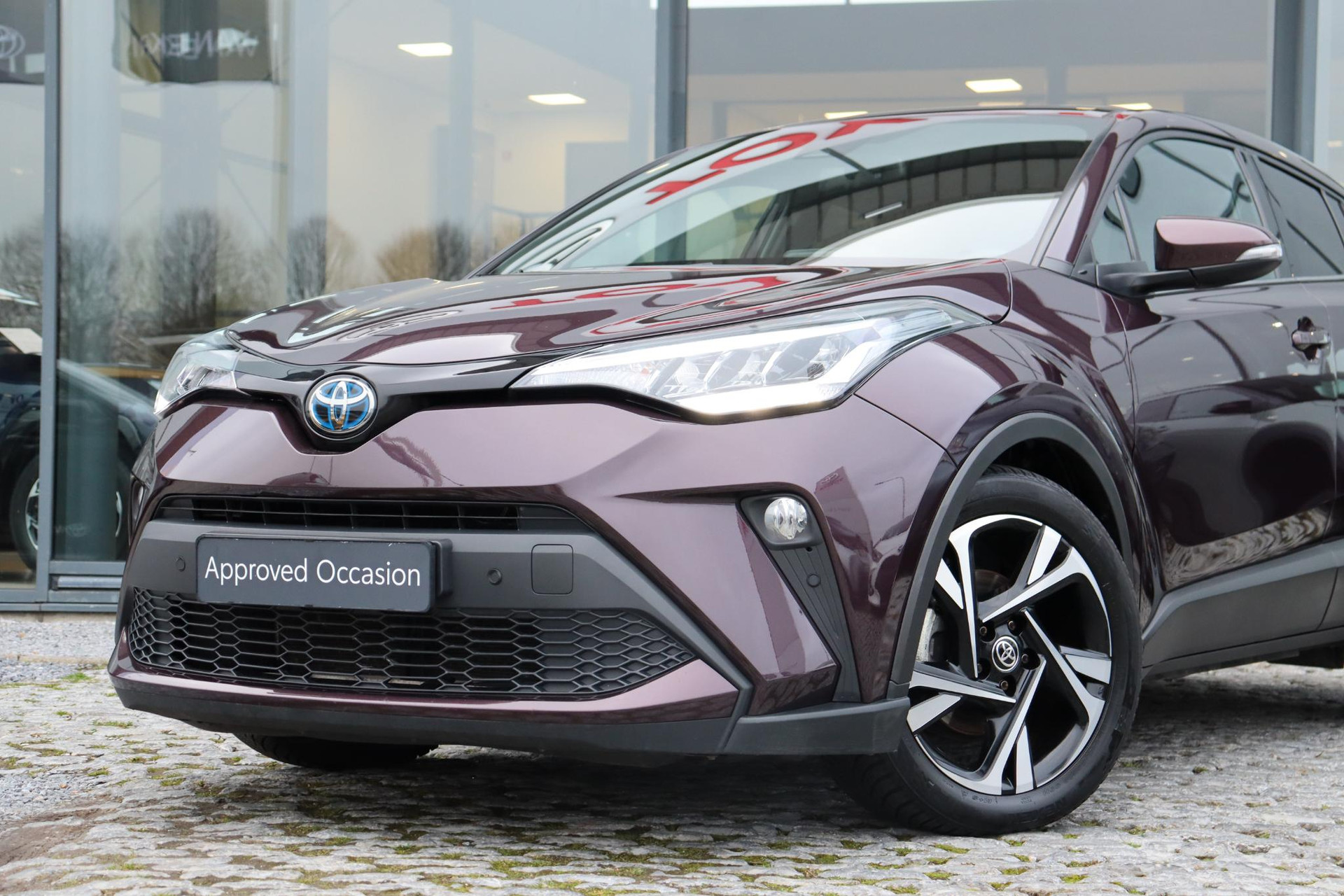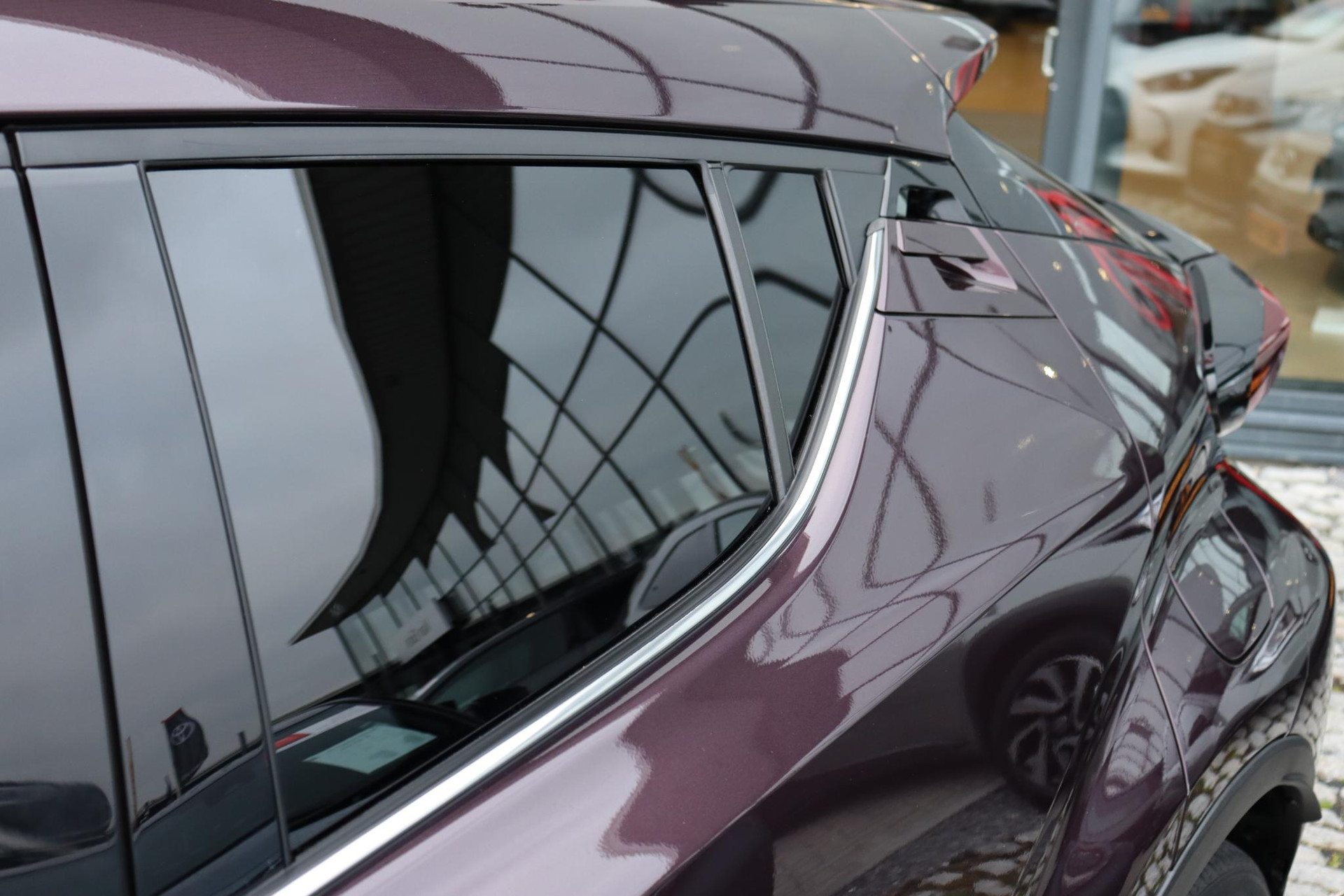 Jonge CHR 1.8 Hybrid Style Limited  in de kleur Deep Amethyste metallic. Deze Coupe High Rider is voorzien van Navigatie, Stoelverwarming,  Blind spot monitor, navigatie,  parkeersensoren voor en achter, Adaptive cruise control, deels lederen bekleding, Apple carplay, Android auto en meer!
