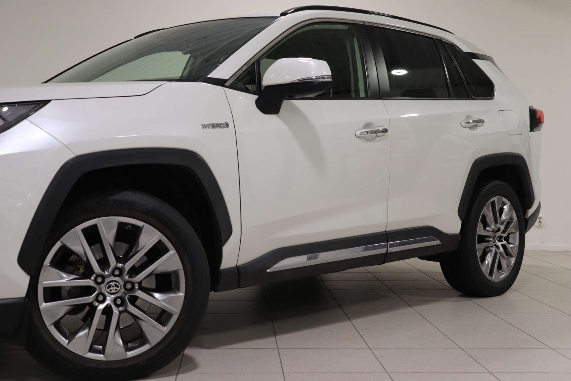 Toyota RAV4 2.5 AWD Hybride Executive Limited Automaat in de kleur Pearl White Metallic voorzien van zwart leder interieur, Applecarplay / Android auto, DAB radio, JBL Geluidssysteem, achteruitrijcamera, navigatiesysteem, lichtmetalen velgen, mistlampen, Memory seats system en nog veel meer.