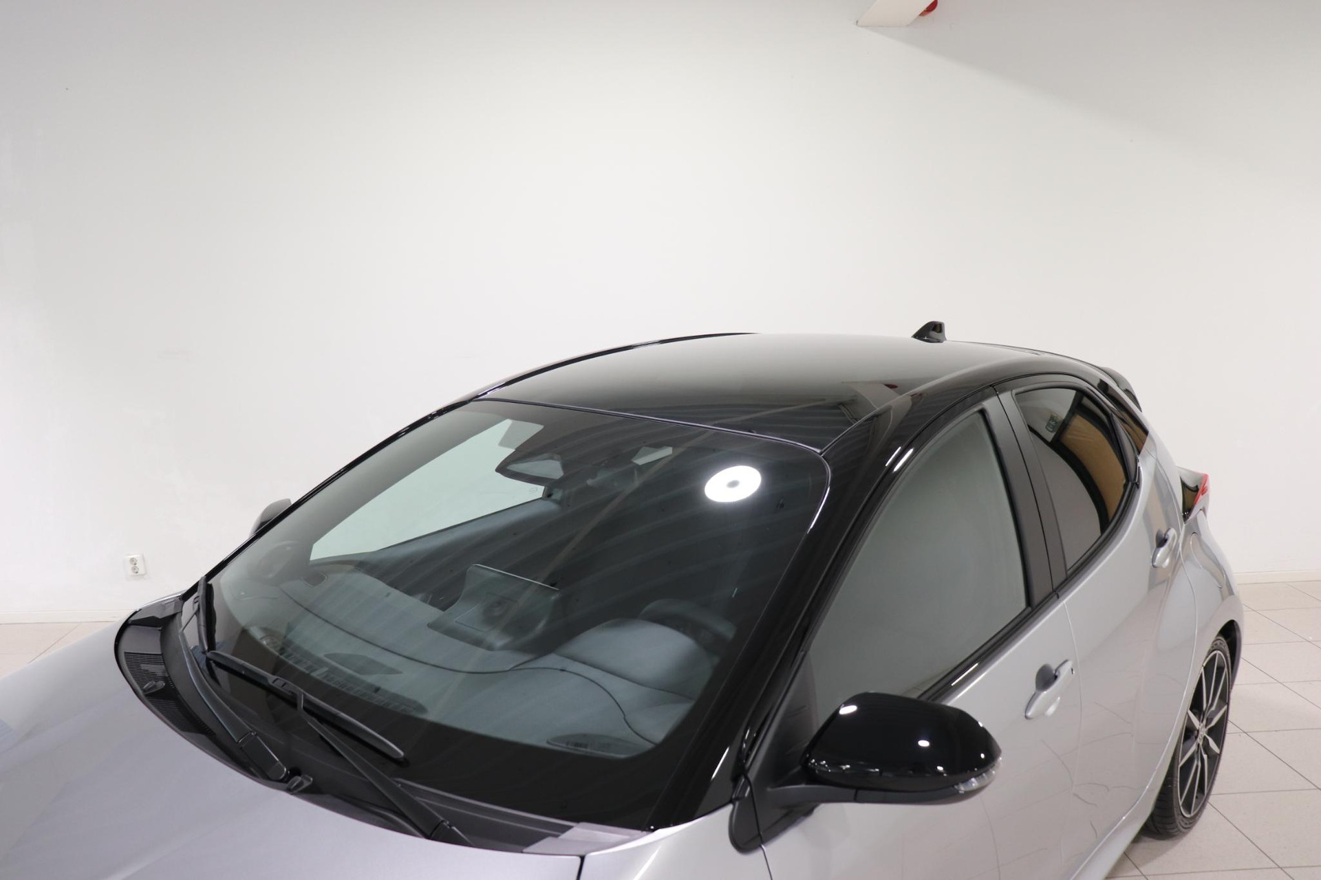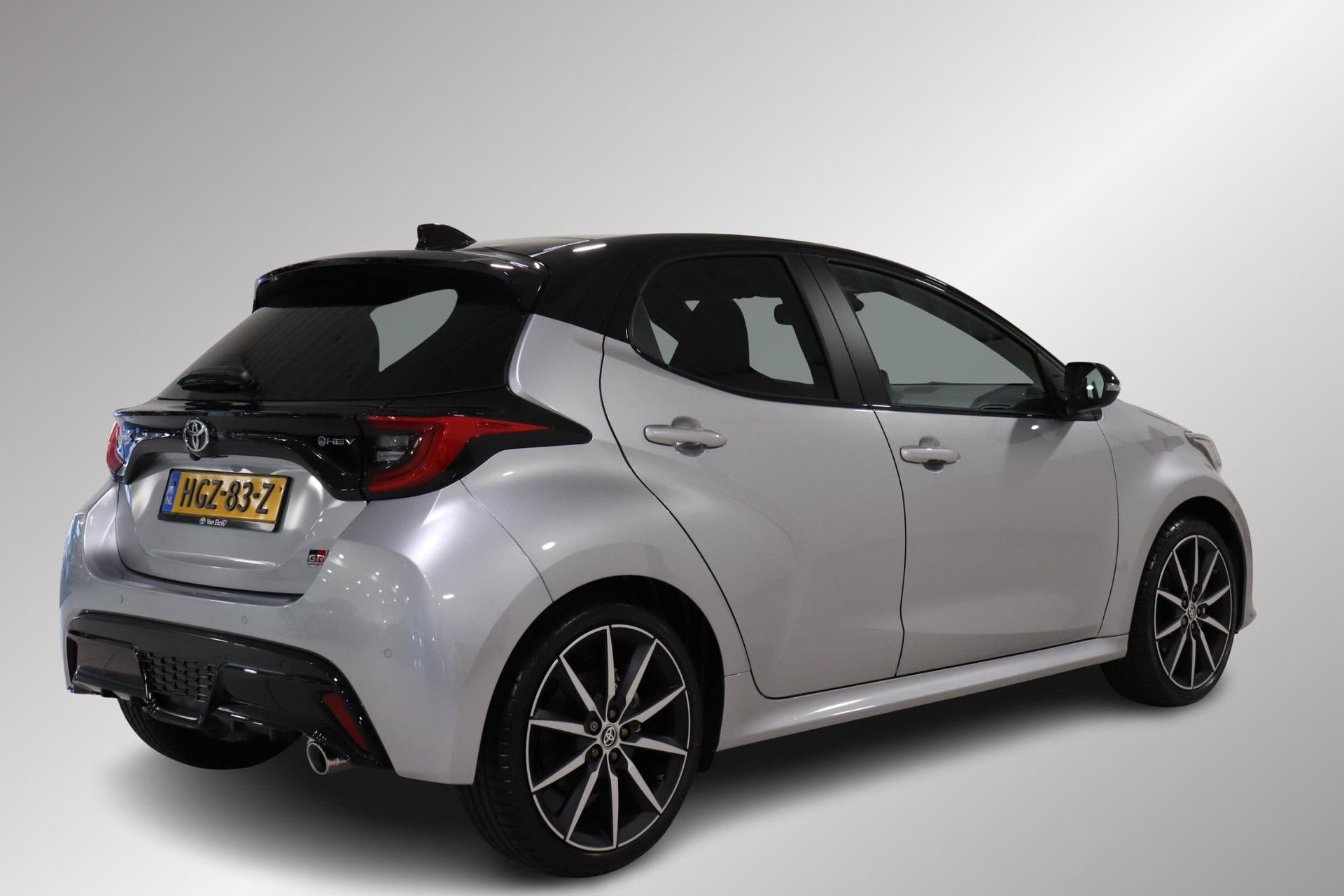 Nieuw bij ons in de demovloot. Deze super gave Toyota Yaris Hybrid 130 in de sportieve GR-Sport uitvoering. Door het mooie contrast tussen de kleur Shimmering Silver metallic en het zwarte dak ziet de Yaris er erg strak uit! In combinatie met het GR-Sport Plus Pack zit de Yaris vol met leuke opties zoals: Panorama dak, Stoelverwarming, Stuurverwarming, Draadloos Apple Carplay & Android Auto, Parkeersensoren met remfunctie, Blind Spot Monitor, Automatisch inklapbare buitenspiegels, Op afstand verwarmen en verkoelen met de Toyota app, 18 inch lichtmetalen velgen, Digitaal instrumentenpaneel, Half lederen bekleding, Donkere hemelbekleding en nog veel meer!